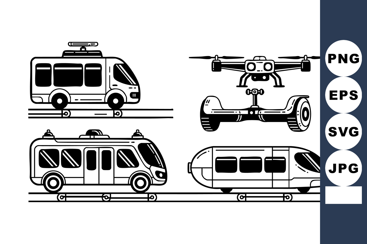Monoline Flat Transport Set: Bus Train Drone Hoverboard example image 1