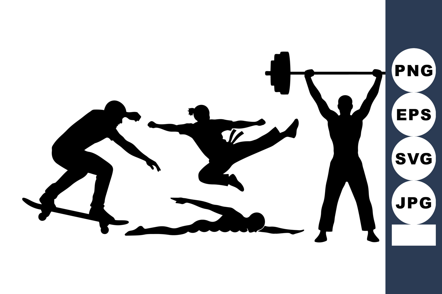Gym Workout Vector Active Lifestyle Svg Extreme Sports Clipart Fitness Silhouette Vector Skateboarder Svg Set Parkour Stunt Bundle Weightlifting Graphic Pack Athlete Action Design Dynamic Movement Clipart Urban Sports Collection