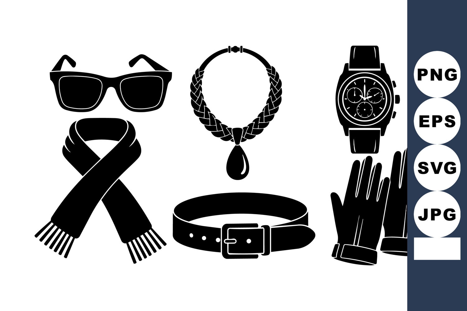 Cutting Machine Designs Winter Accessories Svg Fashion Accessory Bundle Scarf And Gloves Vector Fashion Icons Digital Svg Set Black Winter Accessories Winter Costume Bundle Necklace And Belt Watch And Sunglasses