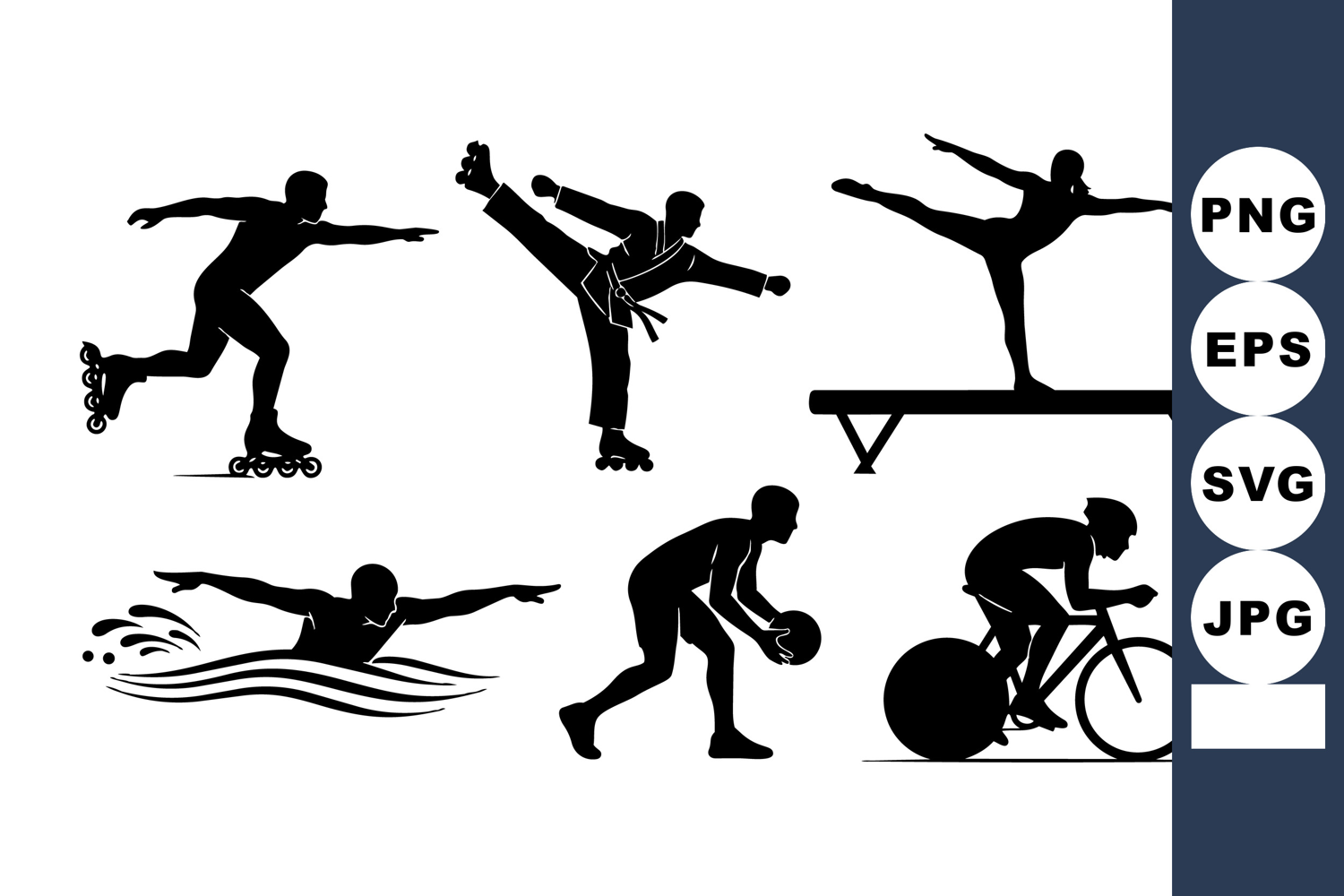 Basketball Player Vectors Sports Silhouette Clipart Athlete Vector Bundle Fitness Activity Set Cycling Sport Graphics Swimming Clipart Collection Roller Skating Illustrations Dynamic Sport Silhouettes Training Exercise Icons Outdoor Sports Graphics