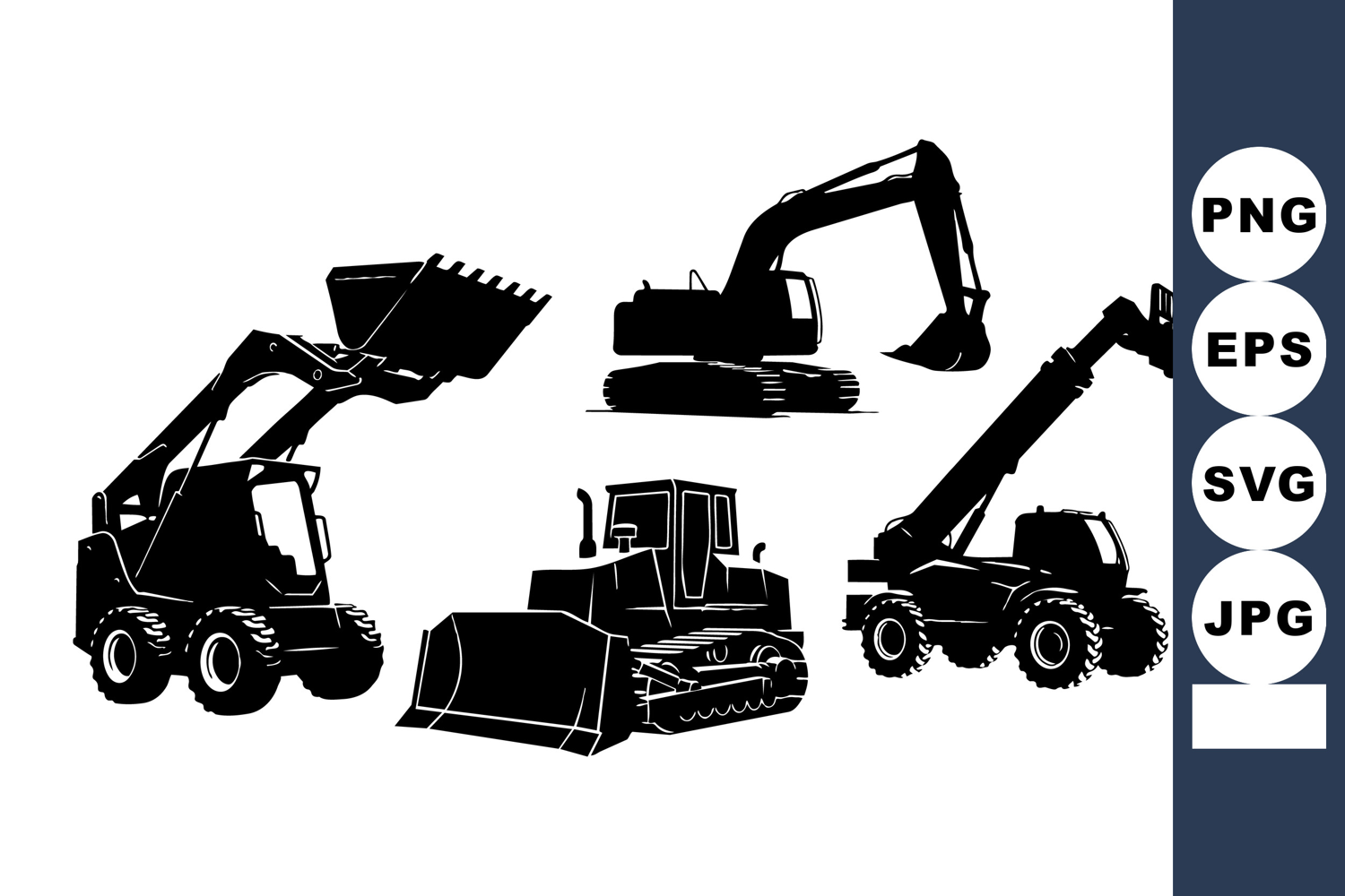 Construction Machinery Clipart Excavator Silhouette Vector Bulldozer Clipart Set Heavy Equipment Illustrations Industrial Vehicle Graphics Construction Site Icons Loader Silhouette Pack Backhoe Vector Collection Earth Moving Clipart Heavy Machinery Design