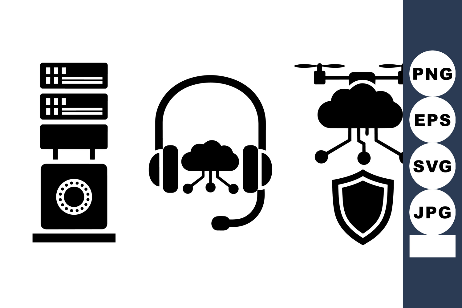 Cloud Computing Icons Rotary Phone Icon Tech Icon Set Digital Device Clipart Communication Gadget Pack Security Shield Illustration Wireless Drone Graphics Headset Vector Design Network Technology Bundle Data Protection Clipart