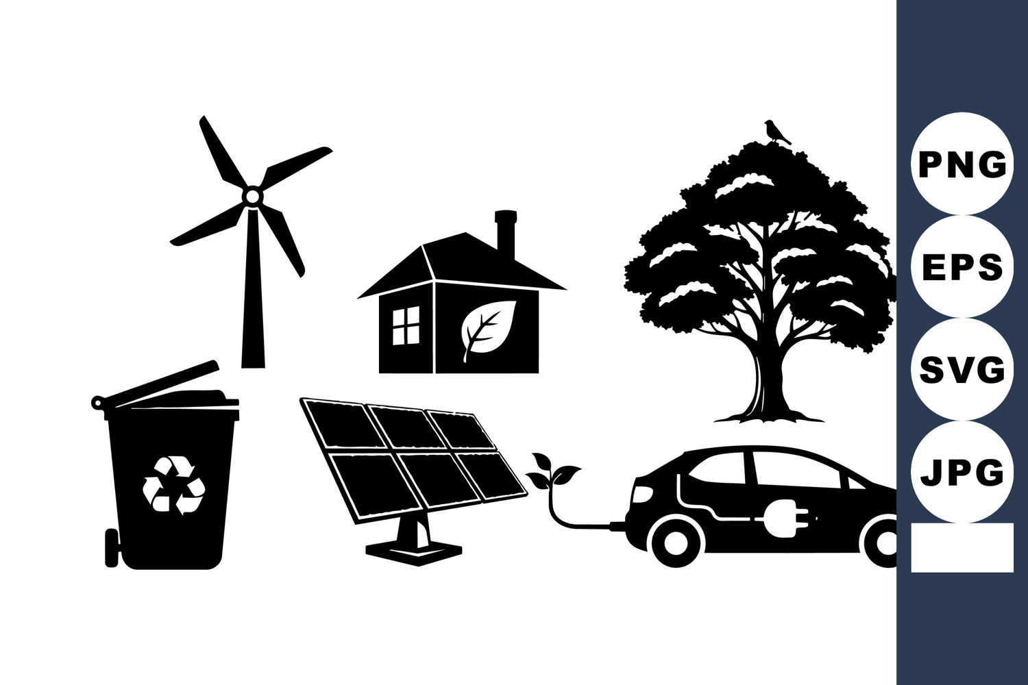 Electric Car Clipart Eco Friendly Icons Wind Turbine Vector Environmental Icon Pack Sustainability Design Set Renewable Energy Bundle Green Energy Graphics Solar Power Illustrations Recycling Symbol Kit Eco Lifestyle Images