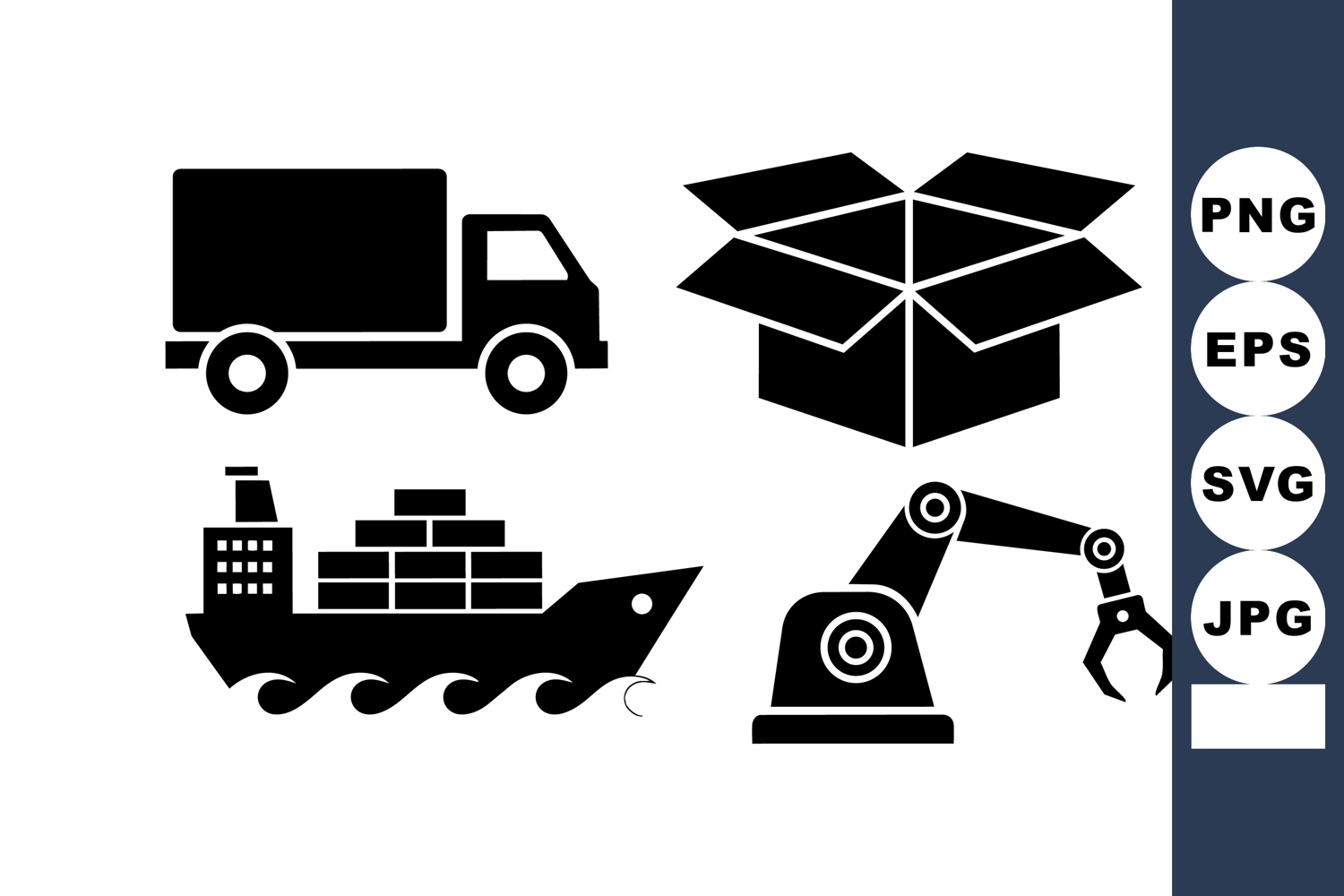 Transport Icon Set Industrial Vector Bundle Logistics Icon Set Shipping Icon Pack Cargo Clipart Collection Delivery Vehicle Icons Robotic Arm Vector Freight Transport Icons Warehouse Icon Set Marine Cargo Icons