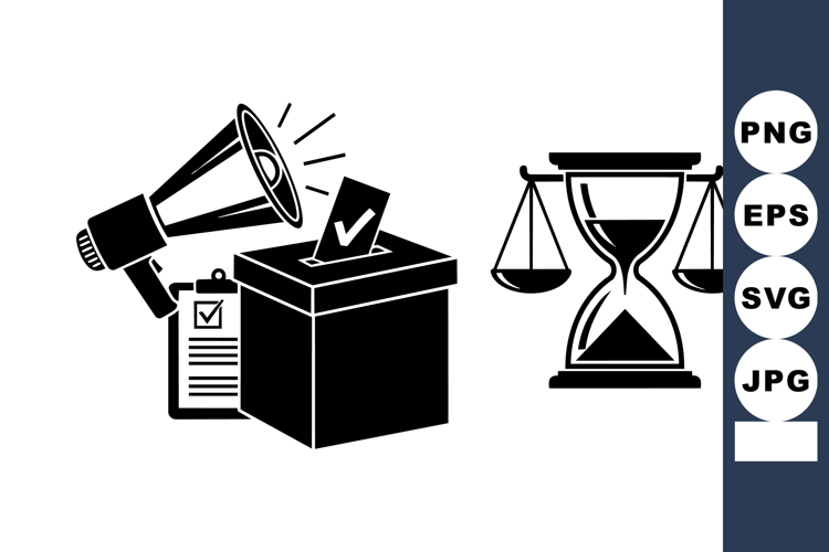 Election Icon Set Political Vector Bundle Voting Clipart Pack Ballot Box Illustration Megaphone Graphic Set Justice Scale Icon Hourglass Timer Design Government Campaign Icons Democracy Symbol Collection Polling Day Graphics