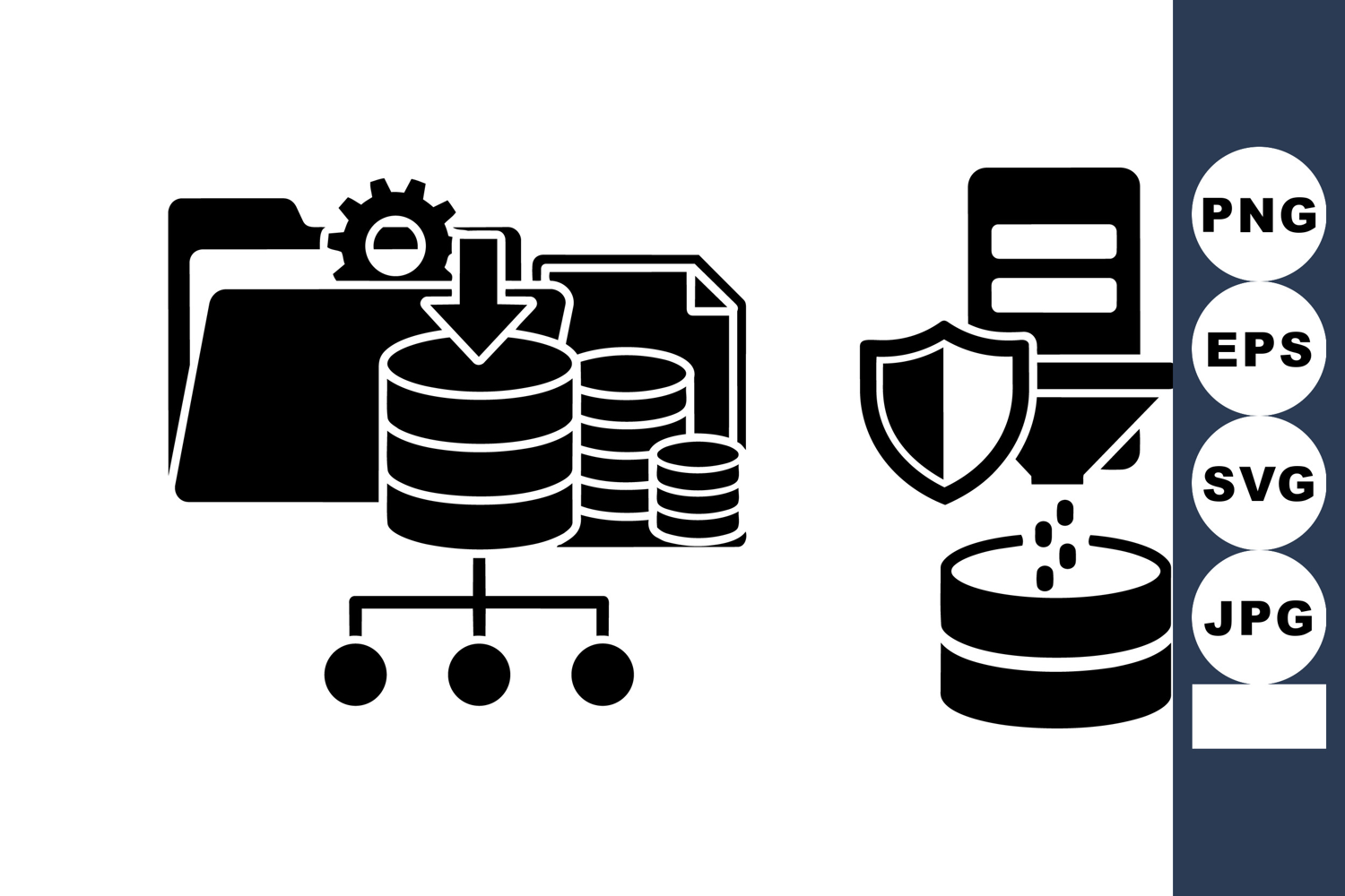 Data Server Icons Network Connection Vectors Database Security Graphics Server File Management Digital Storage Icons Cloud Backup Vectors Technology System Set Secure Data Graphics Information Network Icons File Folder Illustrations