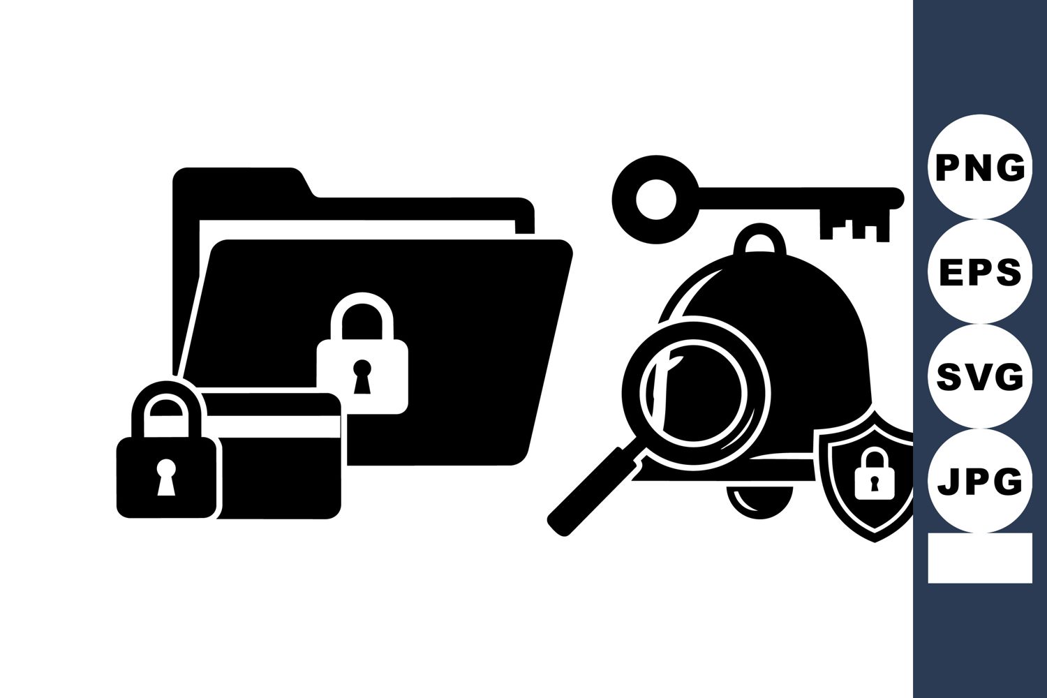 Notification Bell Icon Security Icon Set Data Protection Icons Digital Lock Vectors Privacy Shield Graphics Secure Folder Icons Padlock And Key Alert And Shield Set Safe Data Clipart Folder Lock Design