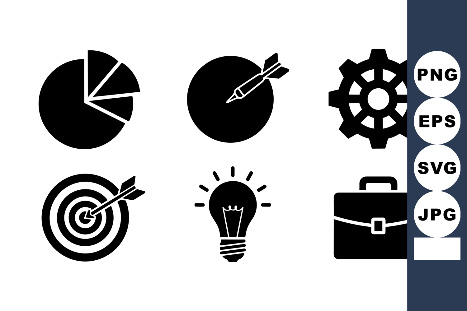Business Icon Set Marketing Vector Icons Goal Achievement Icons Business Growth Symbols Office Icon Bundle Strategy Icon Pack Lightbulb Idea Vector Briefcase Icon Collection Target Arrow Graphics Business Planning Kit