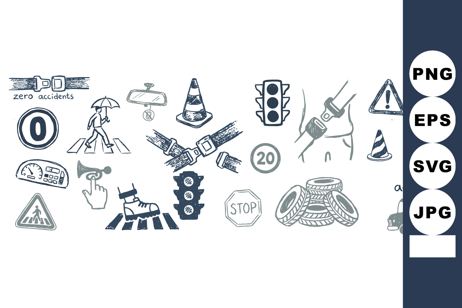 Hand Drawn Vector Traffic Sign Icon Set example image 1