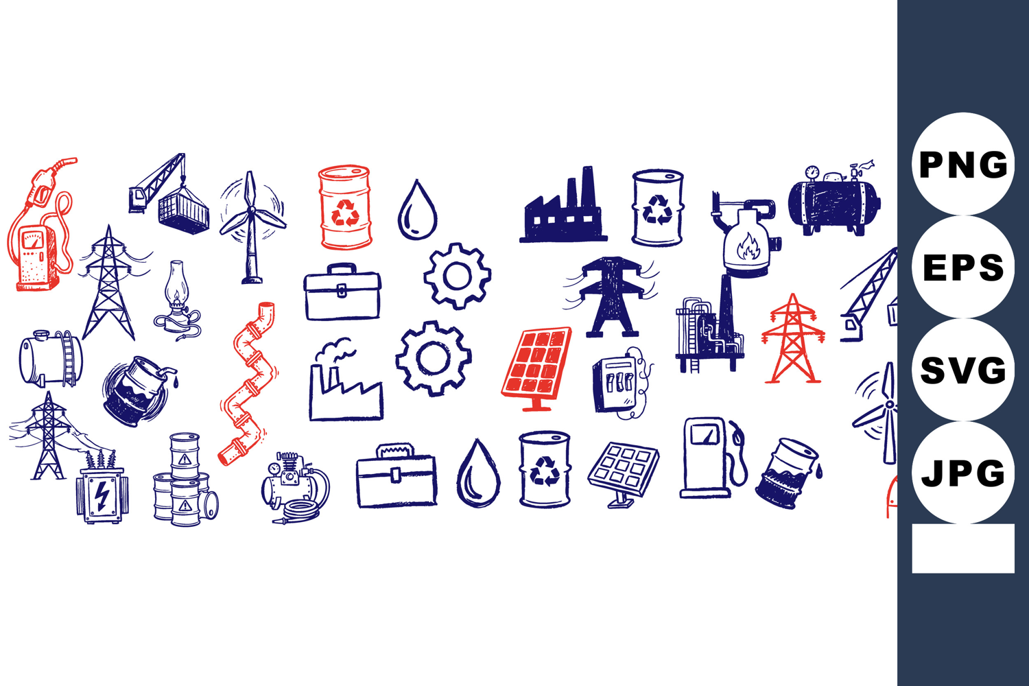 Energy Vector Set Industrial Icon Pack Factory Machine Clipart Power Plant Bundle Engineering Symbols Collection Electricity Icon Set Oil And Gas Images Solar Energy Graphics Wind Power Vectors Industrial Equipment Illustrations