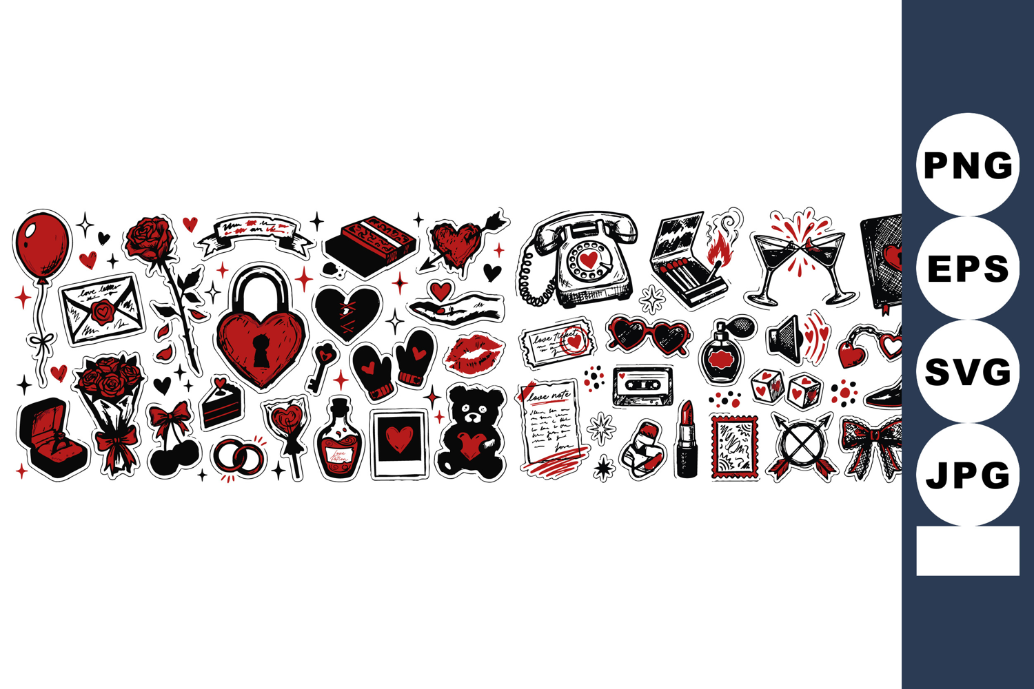 Valentine Day Graphics Romantic Doodle Set Cute Valentine Bundle Vintage Love Clipart Wedding Invitation Art Hand Drawn Love Icons Retro Heart Illustrations Love Message Clipart Red Romance Clipart Celebration Party Graphics