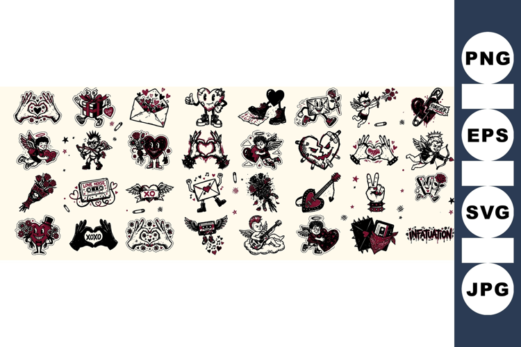 Similar Design Products to Vintage Love Tattoo Clipart Bundle For Valentines