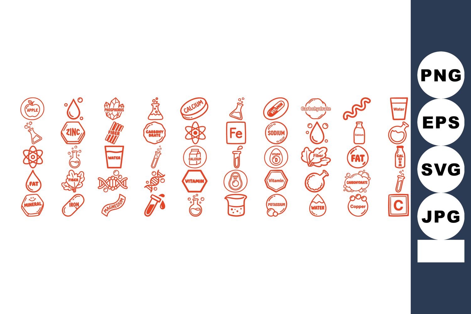 Health Icon Set Nutrition Clipart Pack Hand Drawn Nutrition Vitamin Symbol Bundle Minerals Icon Collection Science Test Tube Clipart Diet Health Graphics Chemical Element Icons Nutrient Icon Set Water Fat Icons