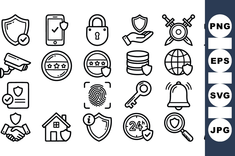 Security Icon Set Protection Icon Pack Minimalist Shield Icons Digital Lock Graphics Security Camera Bundle Privacy Protection Set Safe Home Icons Digital Fingerprint Icons Alarm Notification Graphics Verified Rating Icons
