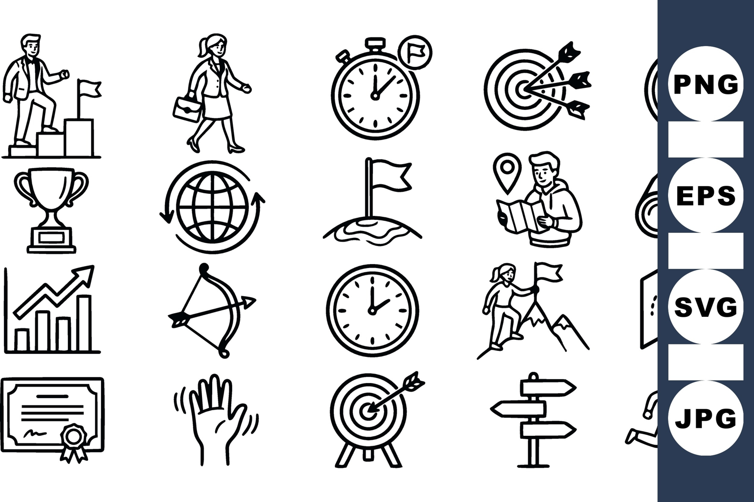 Goal Achievement Icons Business Success Icons Time Management Graphics Leadership Icon Pack Navigation Vector Set Motivation Illustration Set Target Achievement Bundle Progress Tracking Icons Strategy Planning Graphics Winning Concept Icons