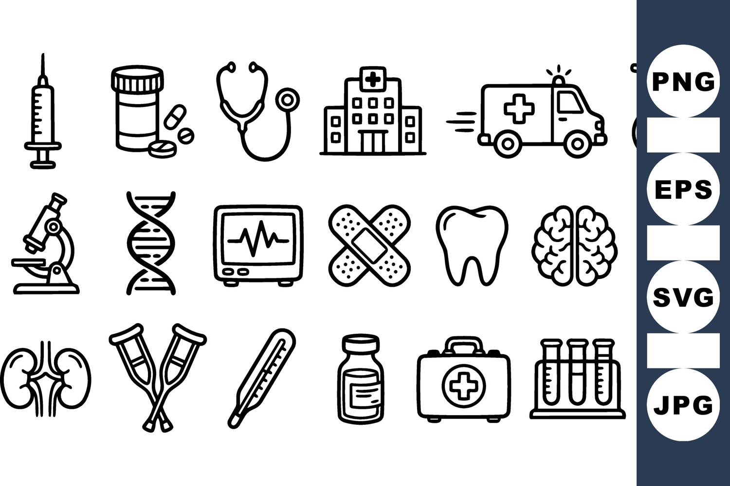 Medical Icon Set Doctor Tools Graphics Patient Care Icons Healthcare Clipart Bundle Hospital Vector Set Emergency Icons Pack Medicine Clipart Set First Aid Vector Bundle Clinical Equipment Set Ambulance Vector Pack
