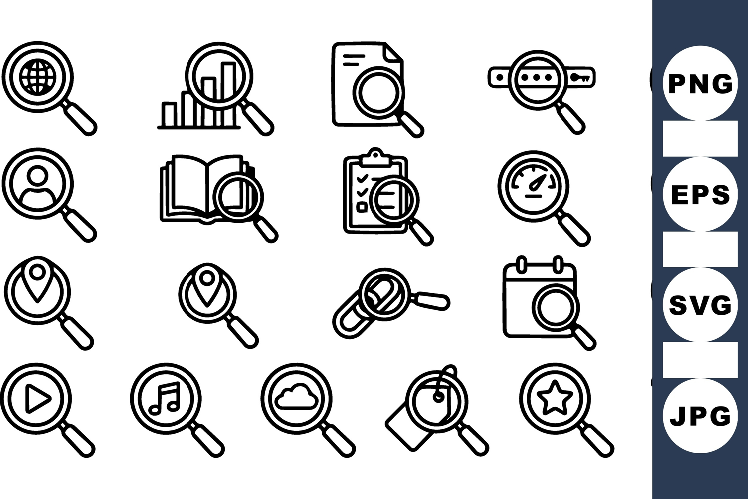 Outline Vector Icons Magnifying Glass Icon Web Design Icons Minimal Icon Set Line Art Icons Technology Icon Pack Modern Icon Bundle Digital User Interface Search Icon Collection Ui Vector Graphics