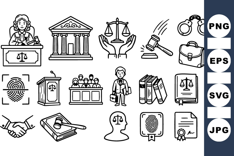 Courtroom Clipart Pack Legal Icon Bundle Justice Vector Set Lawyer Illustration Bundle Gavel Icon Collection Handcuffs Vector Set Legal Document Graphics Court Scales Clipart Fingerprint Icon Kit Trial Courtroom Graphics