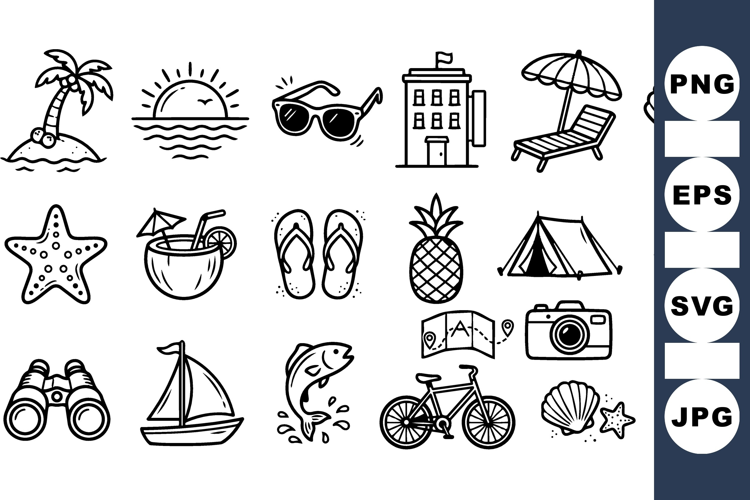 Hand Drawn Summer Vacation Icons Vector Bundle example image 1