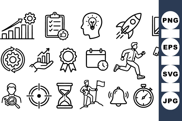 Time Management Graphics Project Planning Icons Business Growth Set Strategy Planning Icons Business Productivity Icons Office Workflow Vector Task Completion Vector Management Process Icons Performance Tracking Set Goal Achievement Graphics