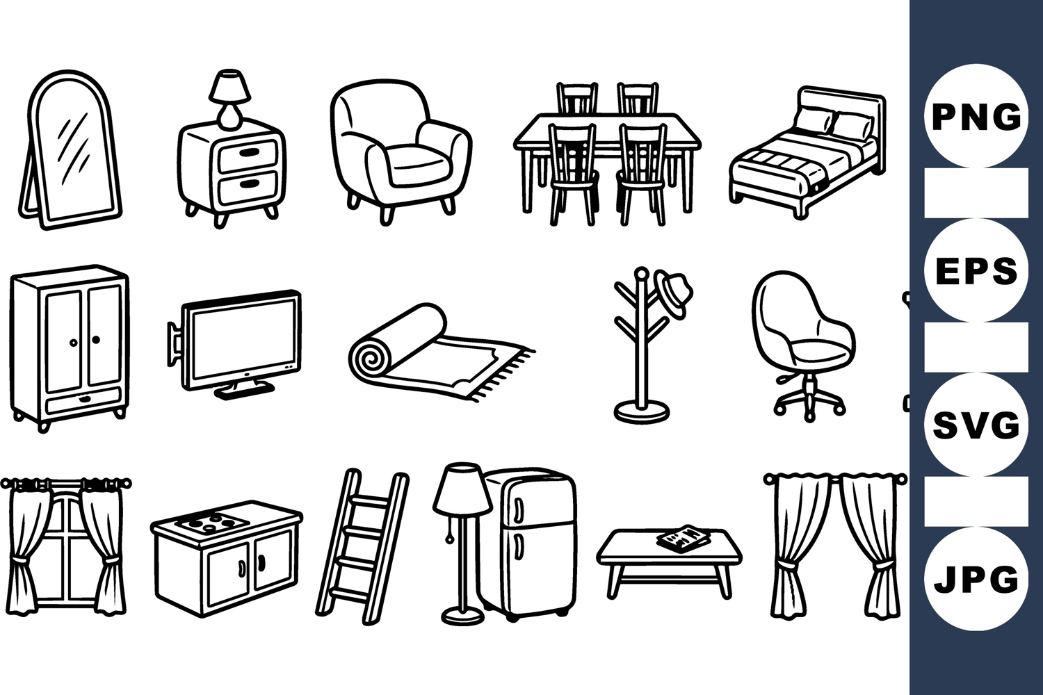 Minimalist Home Furniture Icon Svg Bundle example image 1