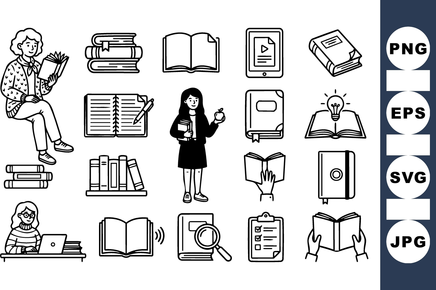 Hand Drawn Educational Book Reading Vector Icons Set example image 1