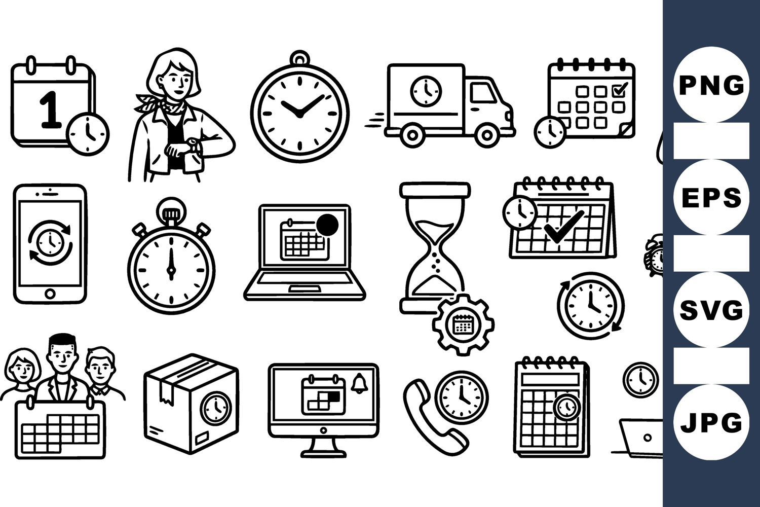 Work Schedule Clipart Time Management Icons Stopwatch Timer Bundle Productivity Icon Bundle Business Scheduling Pack Calendar Reminder Set Deadline Tracking Icons Appointment Planner Graphics Delivery Tracking Icons Time Tracking Set