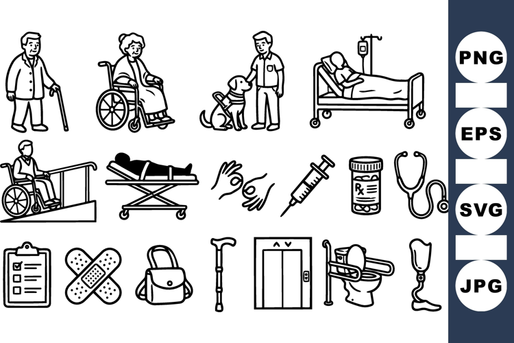 Medical Equipment Set Healthcare Vector Bundle Patient Care Clipart Elderly Care Icons Wheelchair And Ramp Hospital Bed Graphics Medical Professional Icons Health Support Illustrations Caregiver Clipart Set Prosthetic Leg Vector