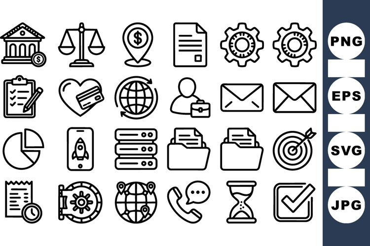 Business Icon Set Finance Icon Bundle Communication Icon Set Time Management Icons Office Clipart Pack Financial Document Icons Money Transaction Clipart Global Business Icons Target Goal Graphics Email Phone Illustrations