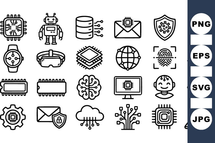 Artificial Intelligence Icons Technology Icon Set Digital Device Clipart Cloud Computing Graphics Vector Tech Icons Computer Chip Graphics Cybersecurity Vector Pack Machine Learning Symbols Robotics Design Elements Electronic Circuit Icons