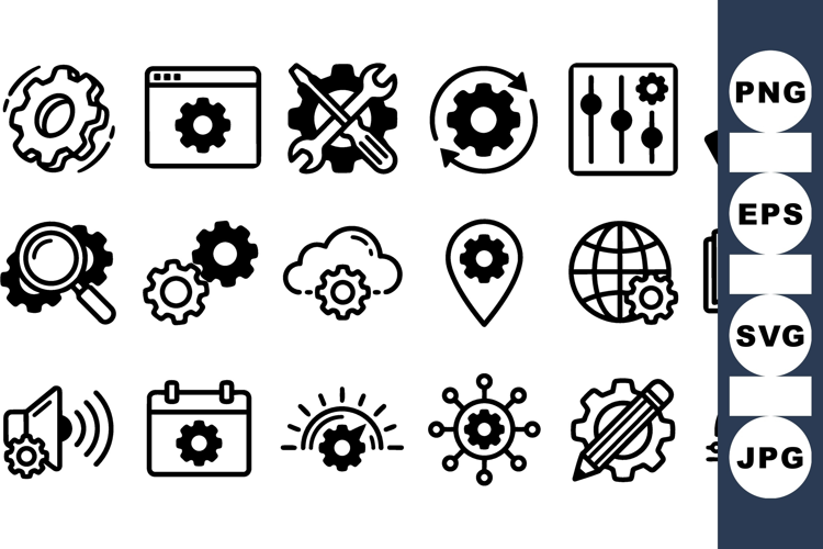 Gear Icon Set Business Process Icons Settings Icon Pack Mechanical Vector Icons Technology Symbol Bundle Software Control Graphics Digital Interface Set Engineering Gear Design Automation Icon Collection Maintenance Tool Graphics