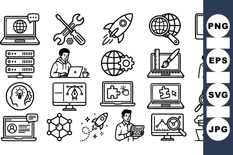 Web Development Icons Startup Icon Pack Technology Icon Set Business Vector Clipart Digital Workspace Graphics Software Development Icons Programming Code Designs Internet Technology Bundle Cloud Computing Clipart Tech Innovation Set