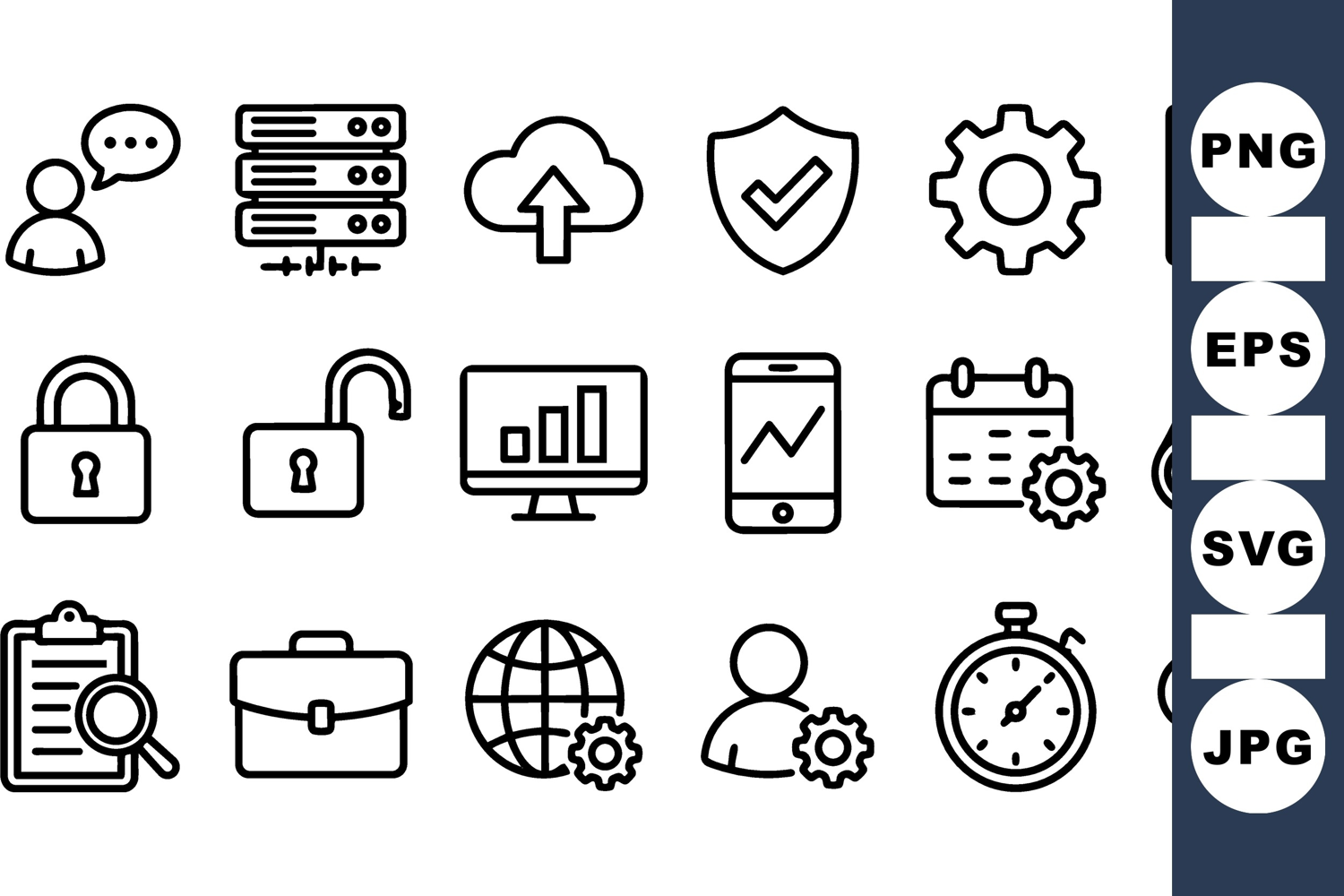 Business Icon Set Data Analytics Icons Cloud Computing Icons Communication Icon Set Time Management Icons Technology Icon Pack Security Icon Bundle User Management Icons Modern Tech Graphics Calendar And Settings