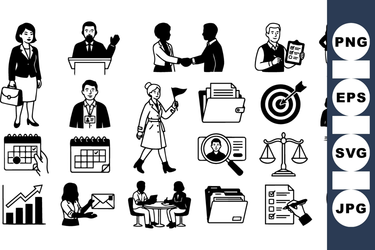 Business Icon Set Business Strategy Icons Project Management Icons Corporate Meeting Graphics Office Worker Icons Professional Vector Pack Business Planning Svg Team Communication Vectors Office Document Illustrations Workplace Collaboration Pack