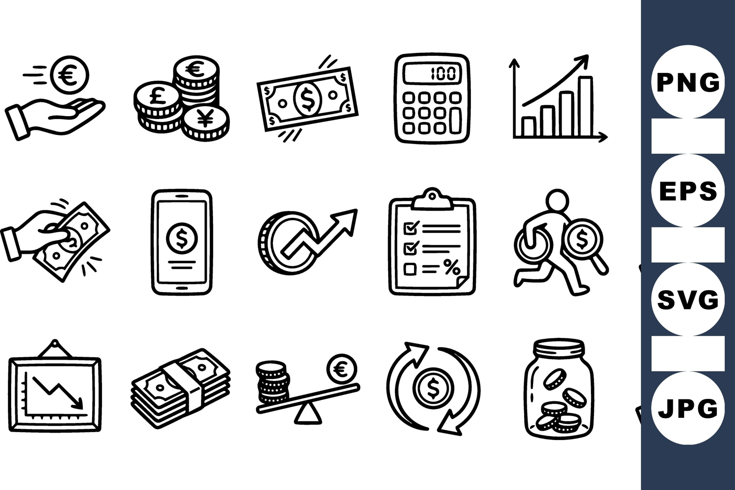Hand Drawn Financial Money Icon Vector Set example image 1