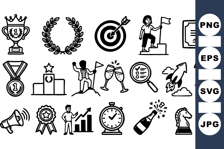 Time Management Icons Business Success Icons Goal Target Clipart Achievement Award Graphics Winner Trophy Set Strategy Plan Icons Growth Chart Bundle Victory Celebration Images Leadership Concept Clipart Teamwork Partnership Set