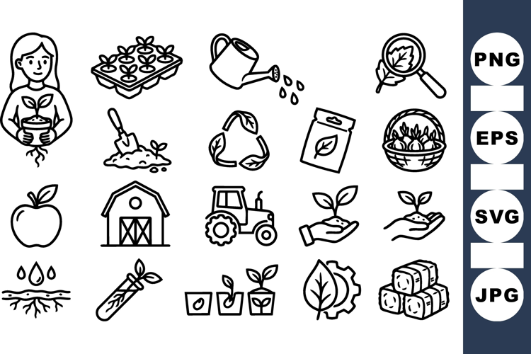Farm Gardening Line Art Icons Set For Eco Projects example image 1