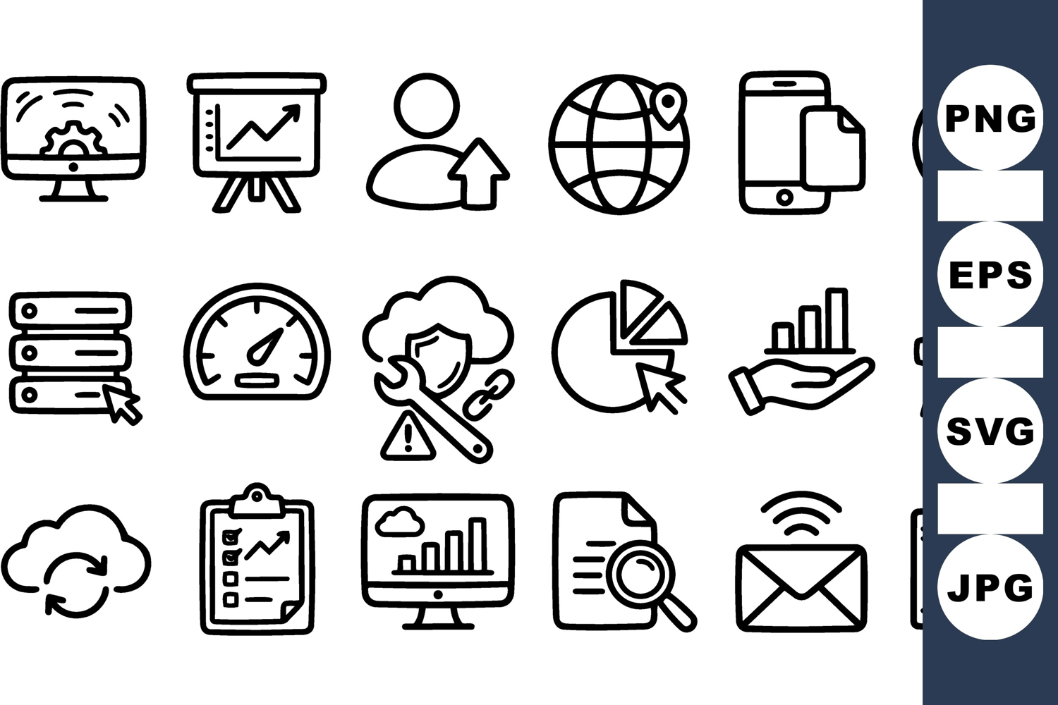 Cloud Computing Icons Business Analytics Icons Network Connection Icons Data Report Graphics Email Communication Symbols Performance Monitoring Set Server Database Graphics Management Tool Icons Statistics Analysis Icons Growth Chart Symbols