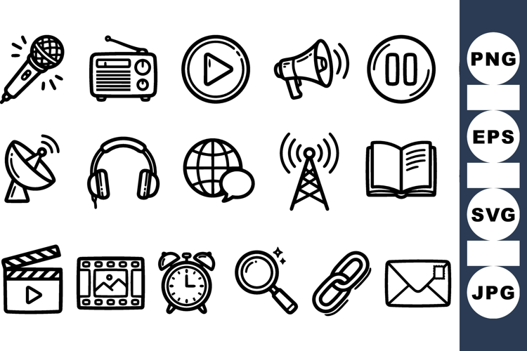 Hand Drawn Media Icon Clipart Set for Branding example image 1