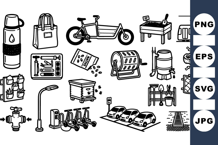 Sustainable Urban Eco Lifestyle Icon Vector Set example image 1
