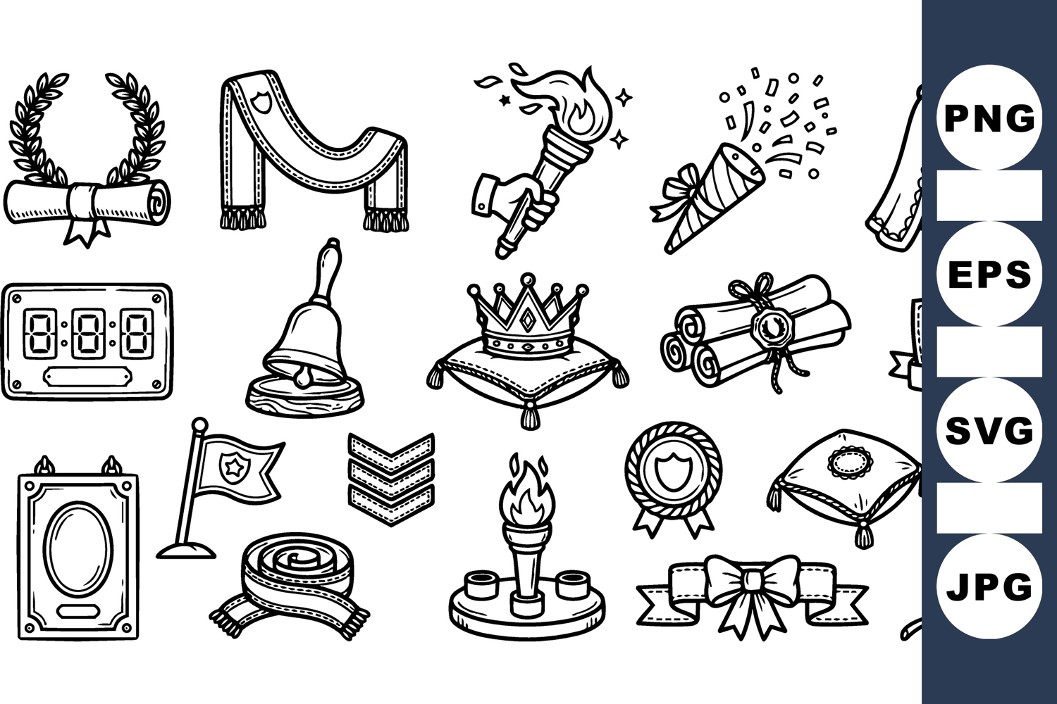 Graduation Laurel Wreath Graduation Celebration Clipart Graduation Ceremony Icons Hand Drawn Diploma Academic Achievement Set Vintage Graduation Bundle Education Event Icons Graduation Torch Illustration Award Ribbon Graphics Ceremonial Crown Pack
