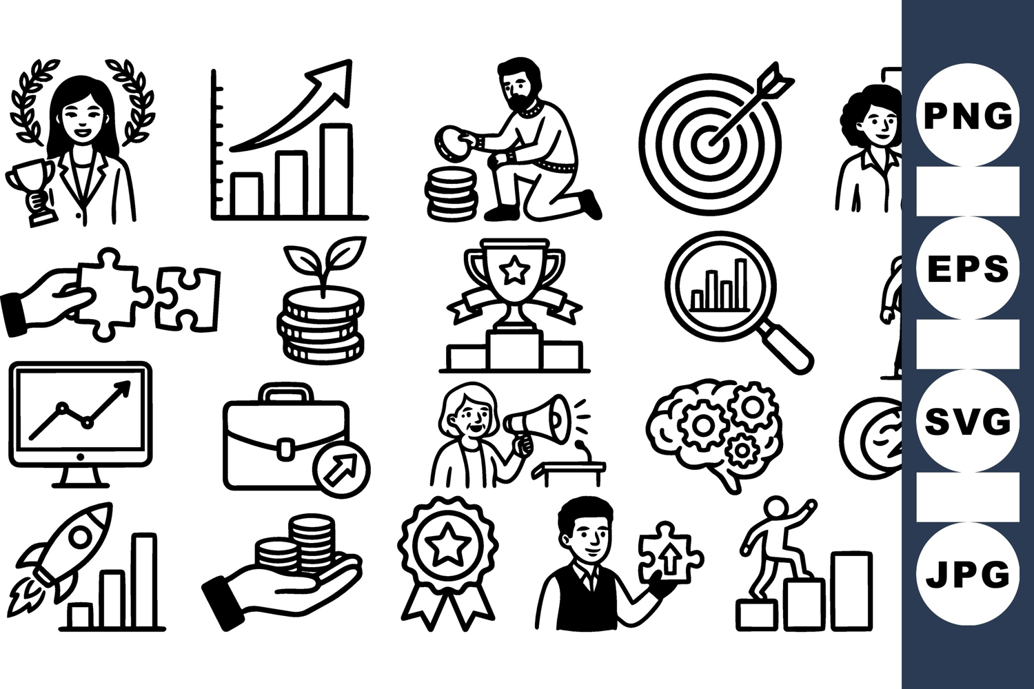 Goal Achievement Icons Business Success Icons Growth Strategy Set Financial Planning Graphics Marketing Strategy Illustrations Career Development Bundle Team Leadership Graphics Profit Growth Symbols Business Management Set Target Achievement Icons