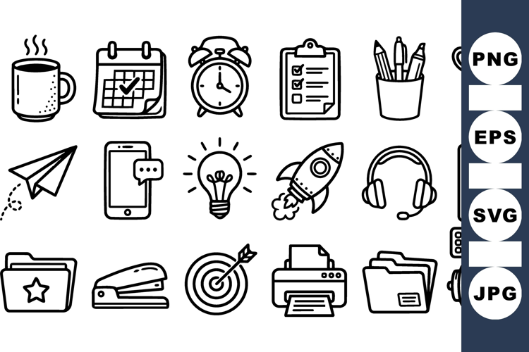 Hand Drawn Icons Business Icon Set Office Work Icons Checklist Vector Set Planner Calendar Clipart Productivity Line Art Smartphone Chat Icons Motivation Achievement Pack Workspace Stationery Set Workplace Tools Clipart
