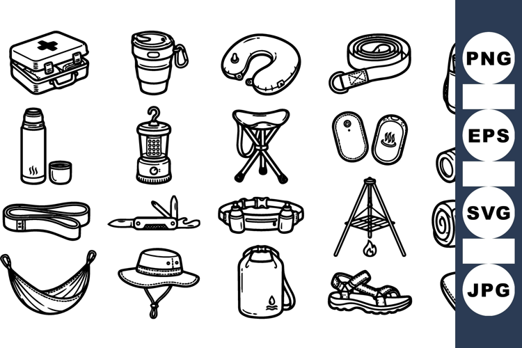 Outdoor Adventure Clipart Camping Gear Bundle Hiking Essentials Set Travel Equipment Pack Portable Camping Kit Campfire Cooking Tools Wilderness Survival Set Backpacking Clipart Pack Nature Exploration Kit Camping Accessory Bundle