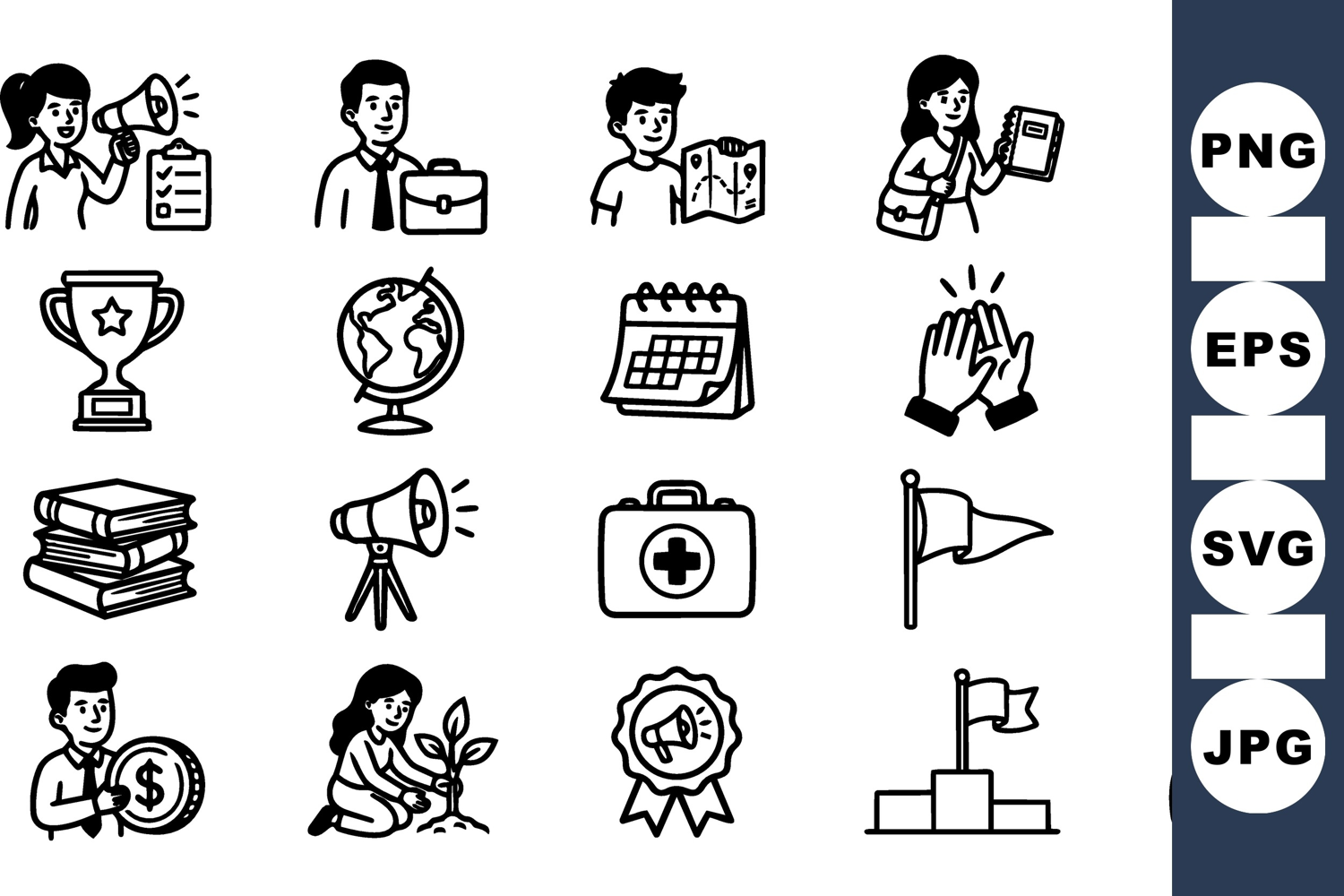 Business Icon Set Office Work Icons Office Equipment Graphics Business Strategy Pack Project Management Icons Employee Badge Graphics Workplace Planning Icons Corporate Award Clipart Teamwork And Growth Professional Communication