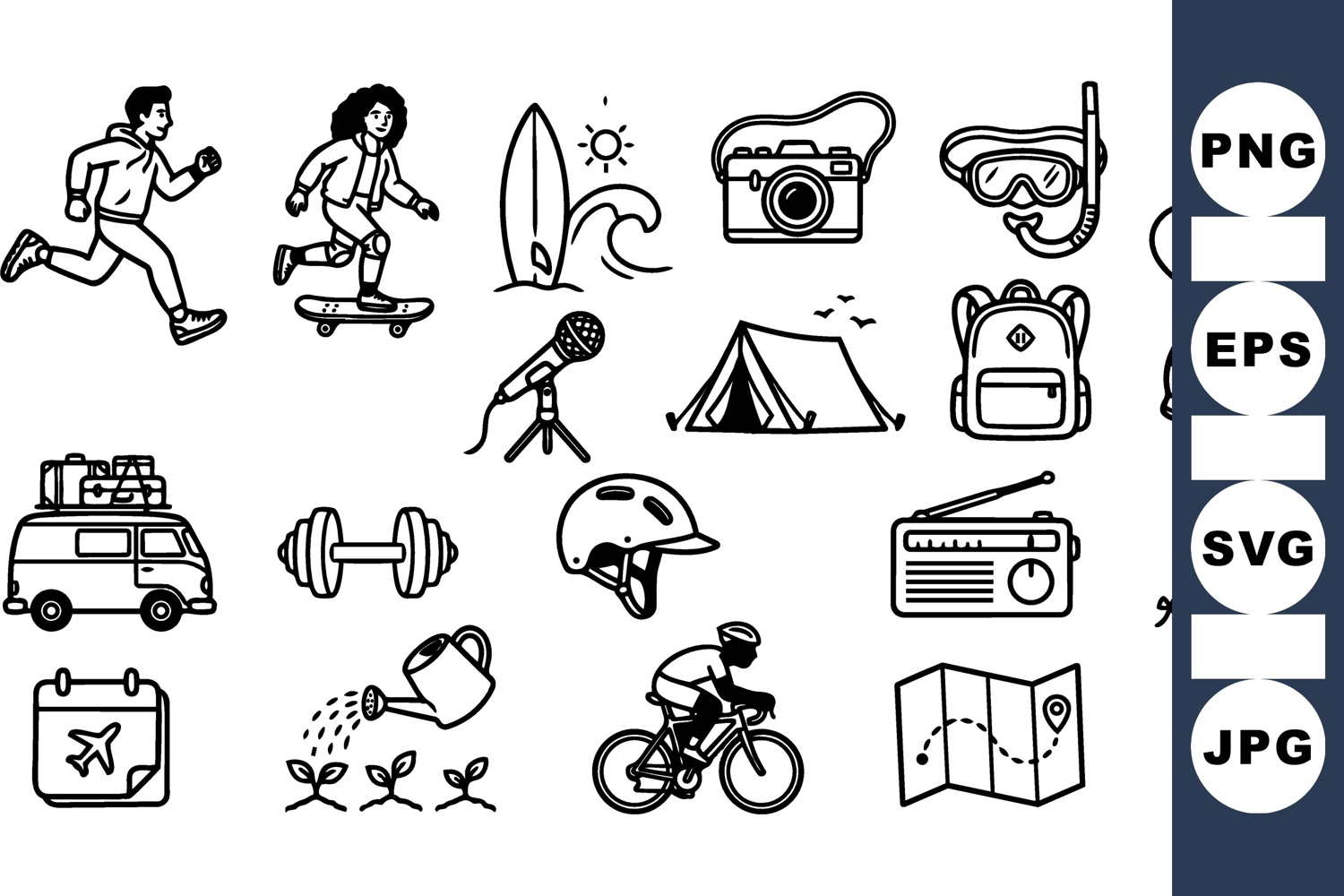 Hand Drawn Icons Camping Icon Set Summer Vacation Icons Outdoor Activity Icons Sports Icon Bundle Travel Adventure Pack Fitness Equipment Clipart Biking And Hiking Nature Exploration Clipart Recreational Activity Set