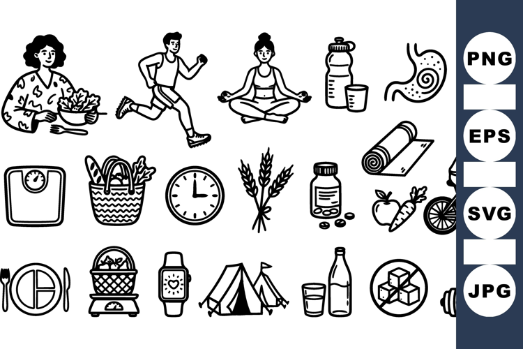 Hand Drawn Healthy Lifestyle Icon Vector Set example image 1