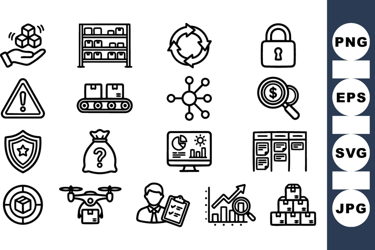 Business Process Graphics Logistics Icon Set Supply Chain Icons Industrial Factory Icons Warehouse Storage Vector Shipping Delivery Icons Inventory Management Pack Order Tracking Symbols Cargo Transport Collection Security And Payment Icons