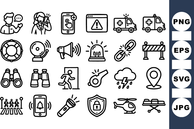 Line Art Emergency Safety Icon Set For Alerts example image 1