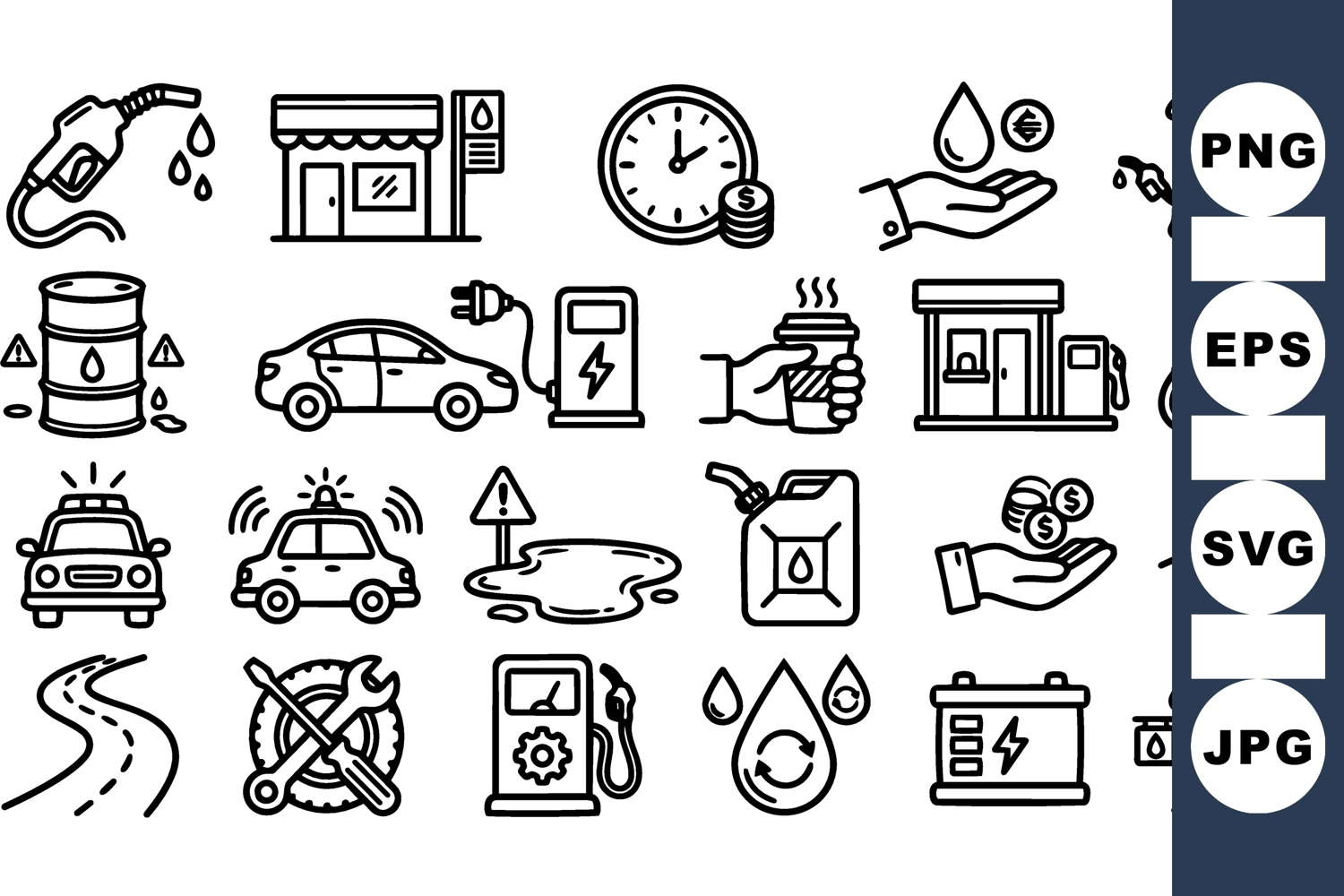 Similar Design Products to Line Art Fuel Station Icon Set For Transport